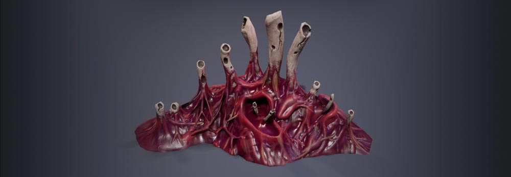 During my internship, I worked on assets for their game Bloodbag, a world made out of flesh. My first asset was 'the Infection pustules'. This was the first time I had to sculpt an asset. I was mainly figuring out how to make it look good and faithful to the concept art. Simon guided me through the process of sculpting. Getting the hang of sculpting and working within Unreal Engine was relatively new. It was a really fun first asset to do.